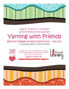 Yarning with Friends was designed for adults, but children age 12 and older may attend, if accompanied by an adult. Our next meeting is Oct. 14, 2025.